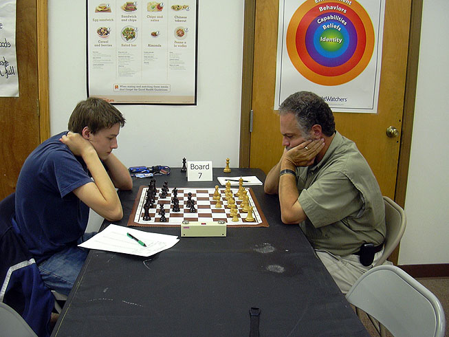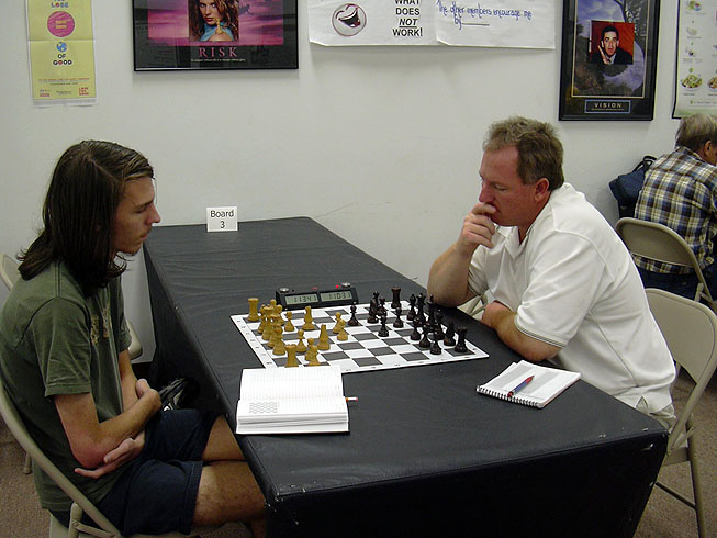 Thirsty for the Win: Young Will Campbell (R) looks for a Master scalp in round two. NM Chris Mabe would have none of it.