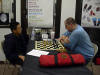 Let Me See Here...Jordan Joseph (L) strikes a dapper pose as opponent Grace Campbell studies the board in round three.